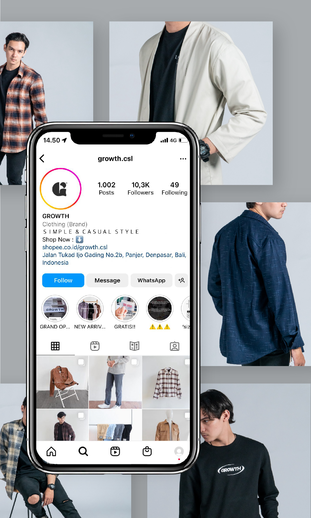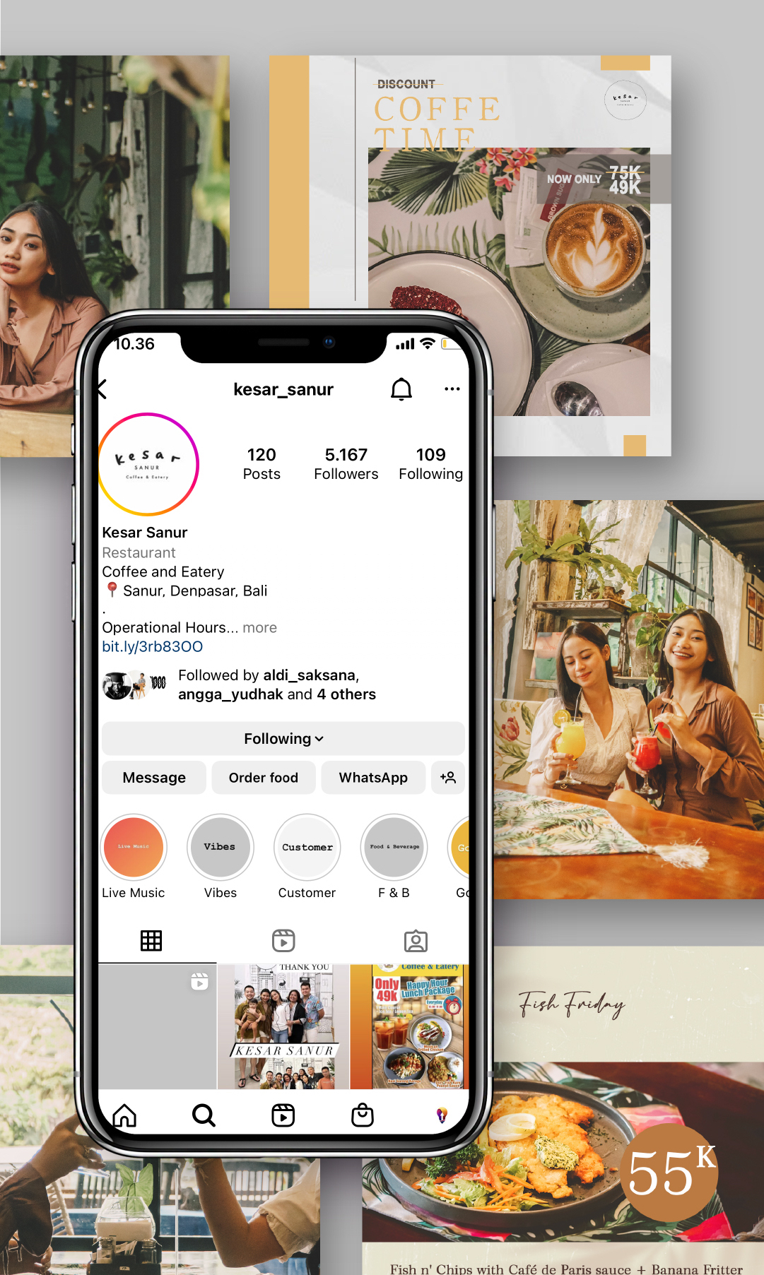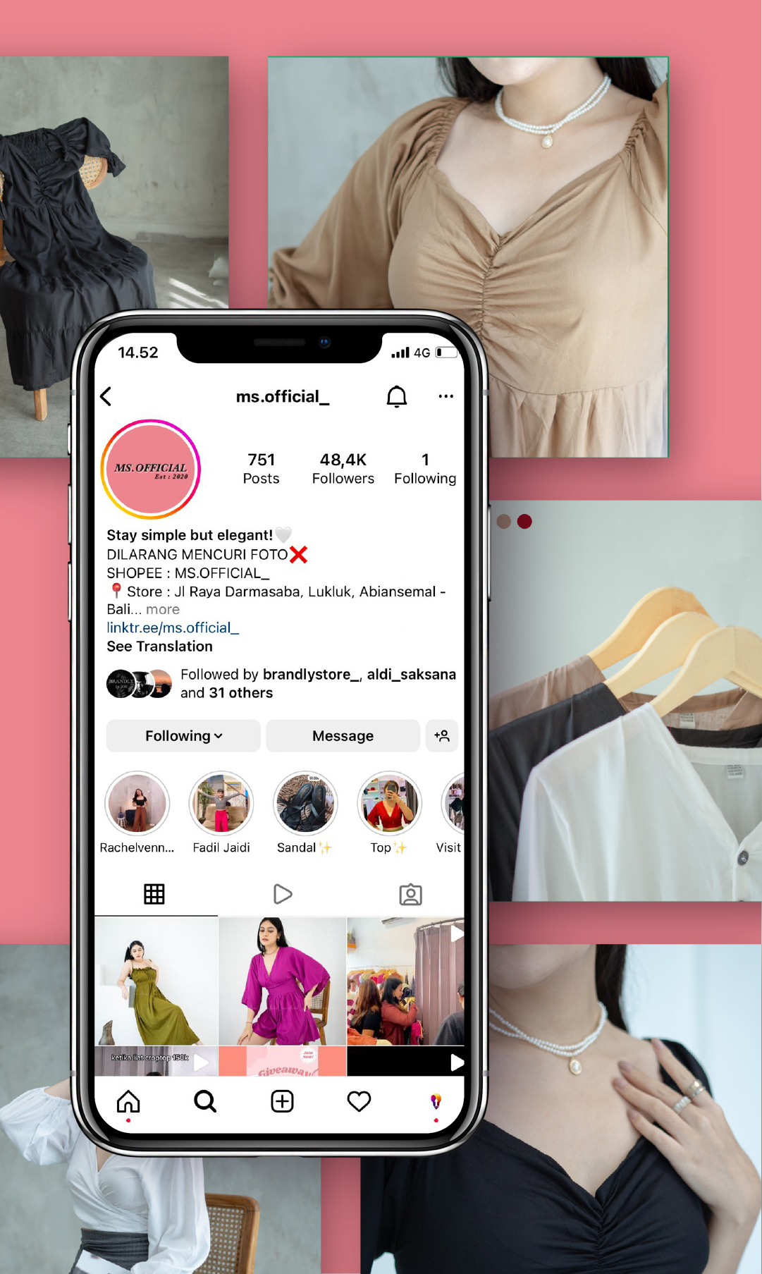 Kami membantu bisnis tidak hanya dalam membuat desain feed dan konten yang bagus saja, namun juga memikirkan bagaimana mengembangkan branding sekaligus marketing melalui Social Media.